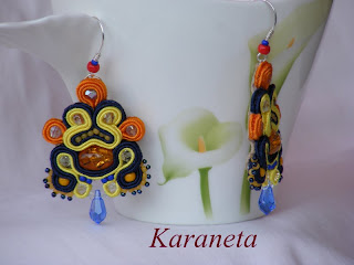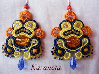 Sznurek sutasz w kolorach: pomarańczowy, żółty, granatowy.