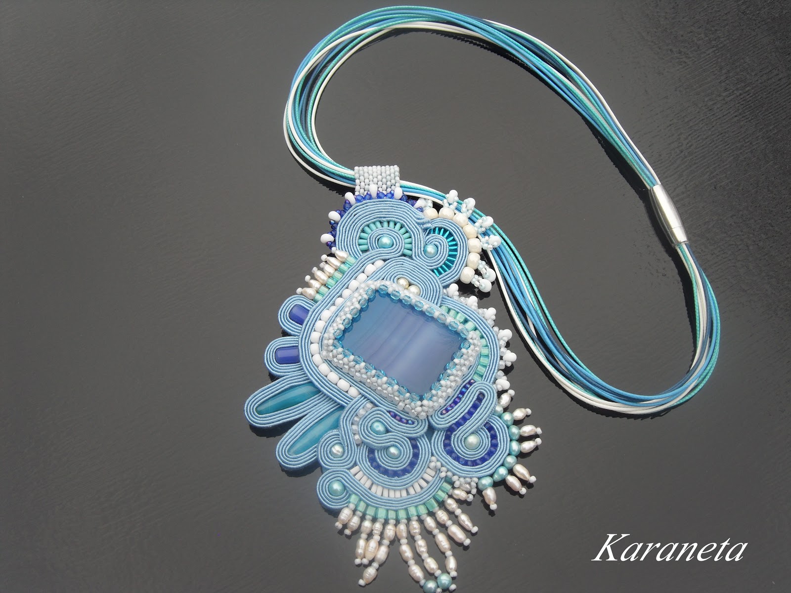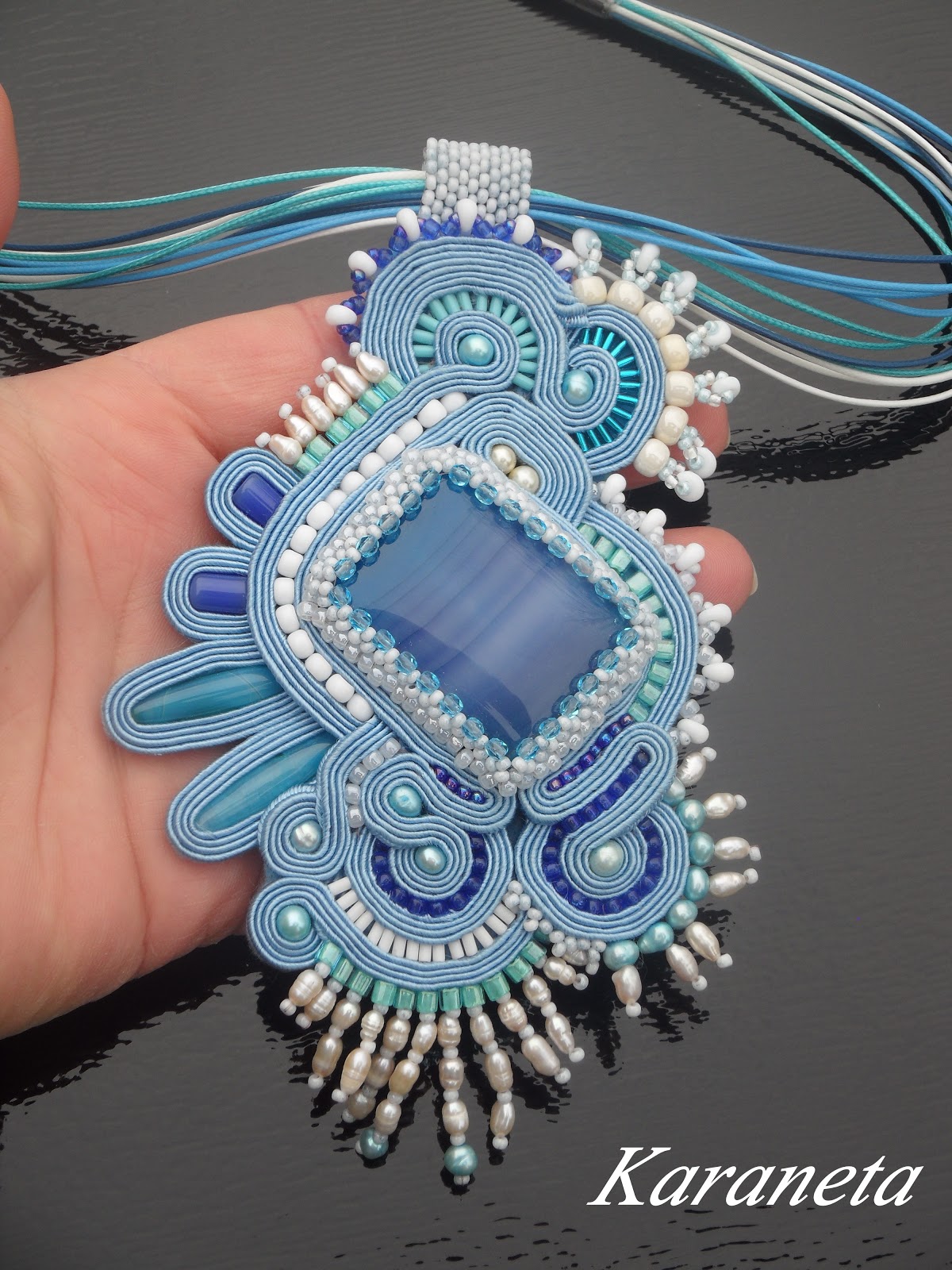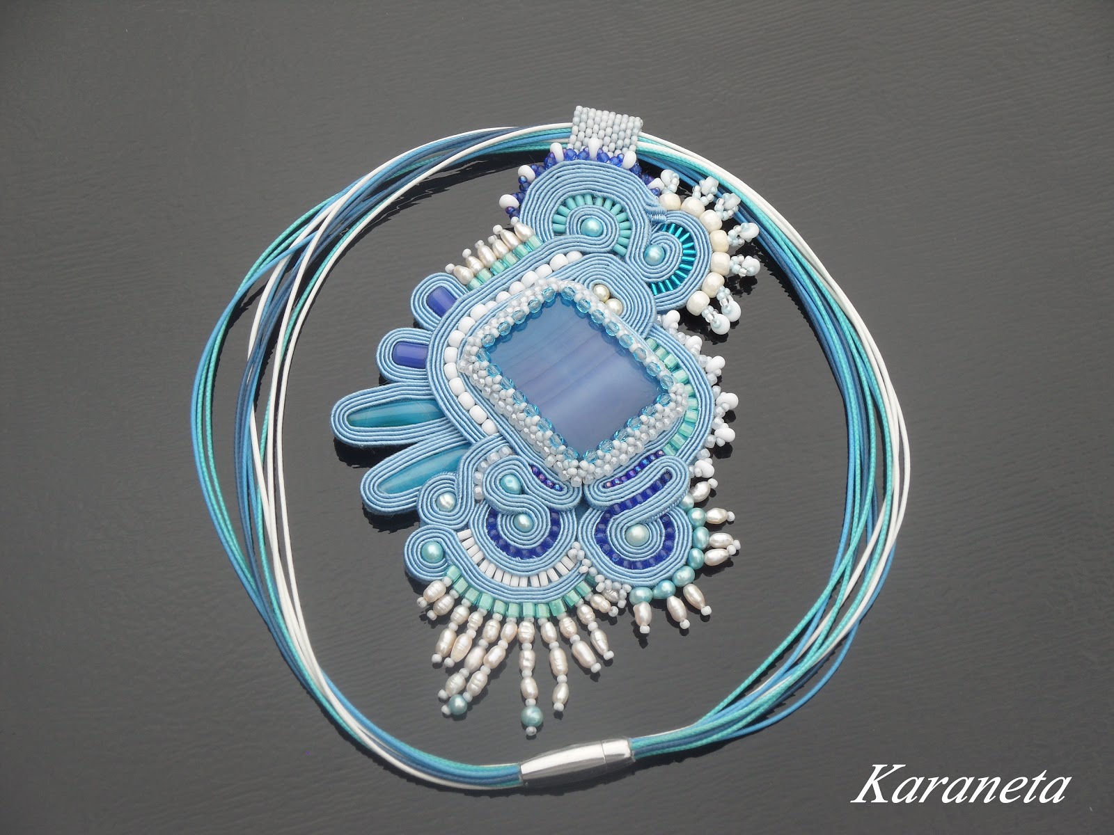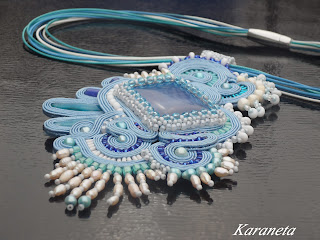 Wisior wykonany techniką haftu sutasz