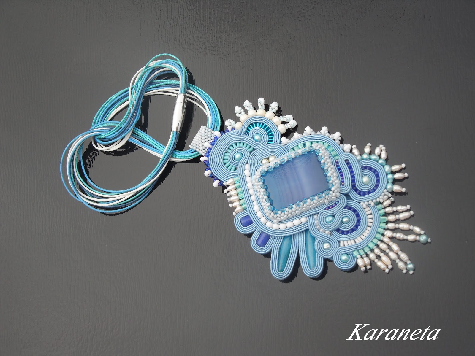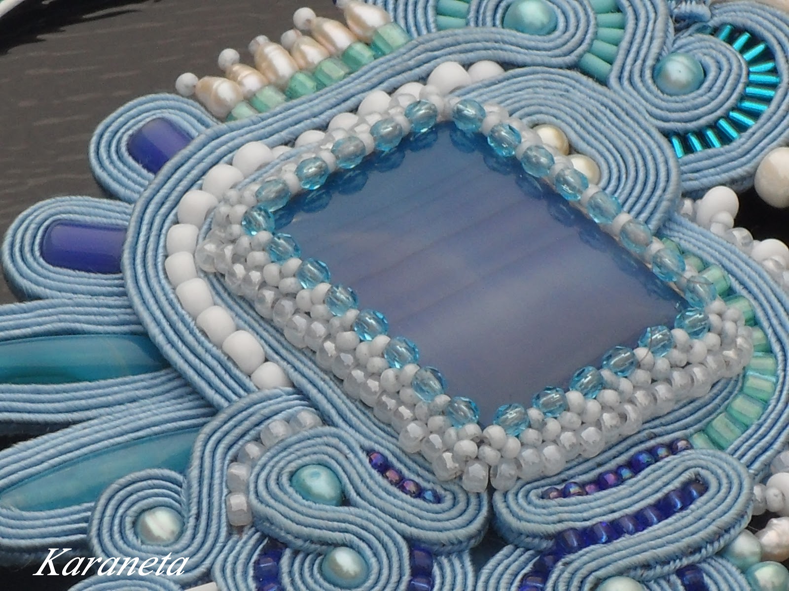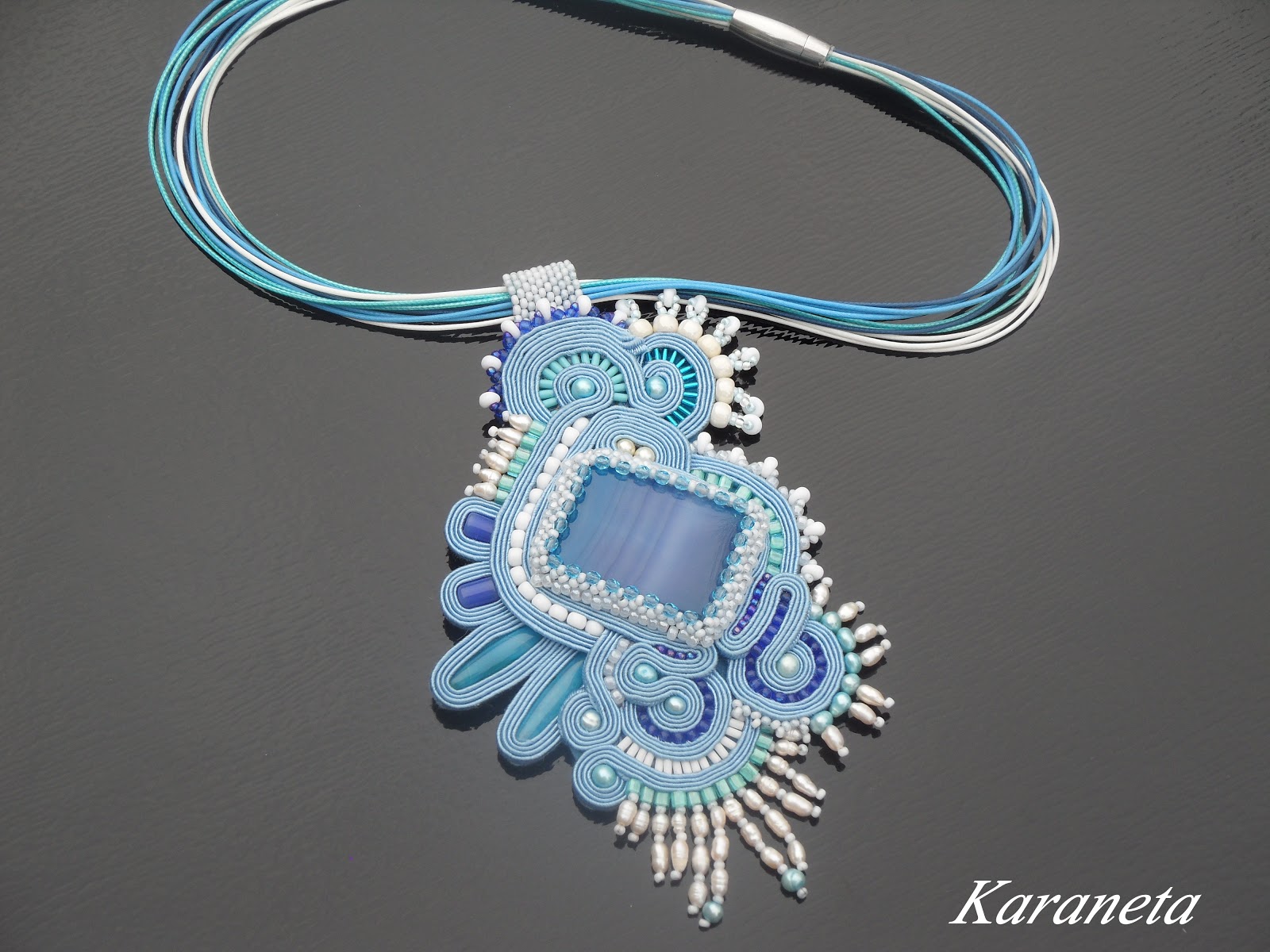 Wisior wykonany techniką haftu sutasz